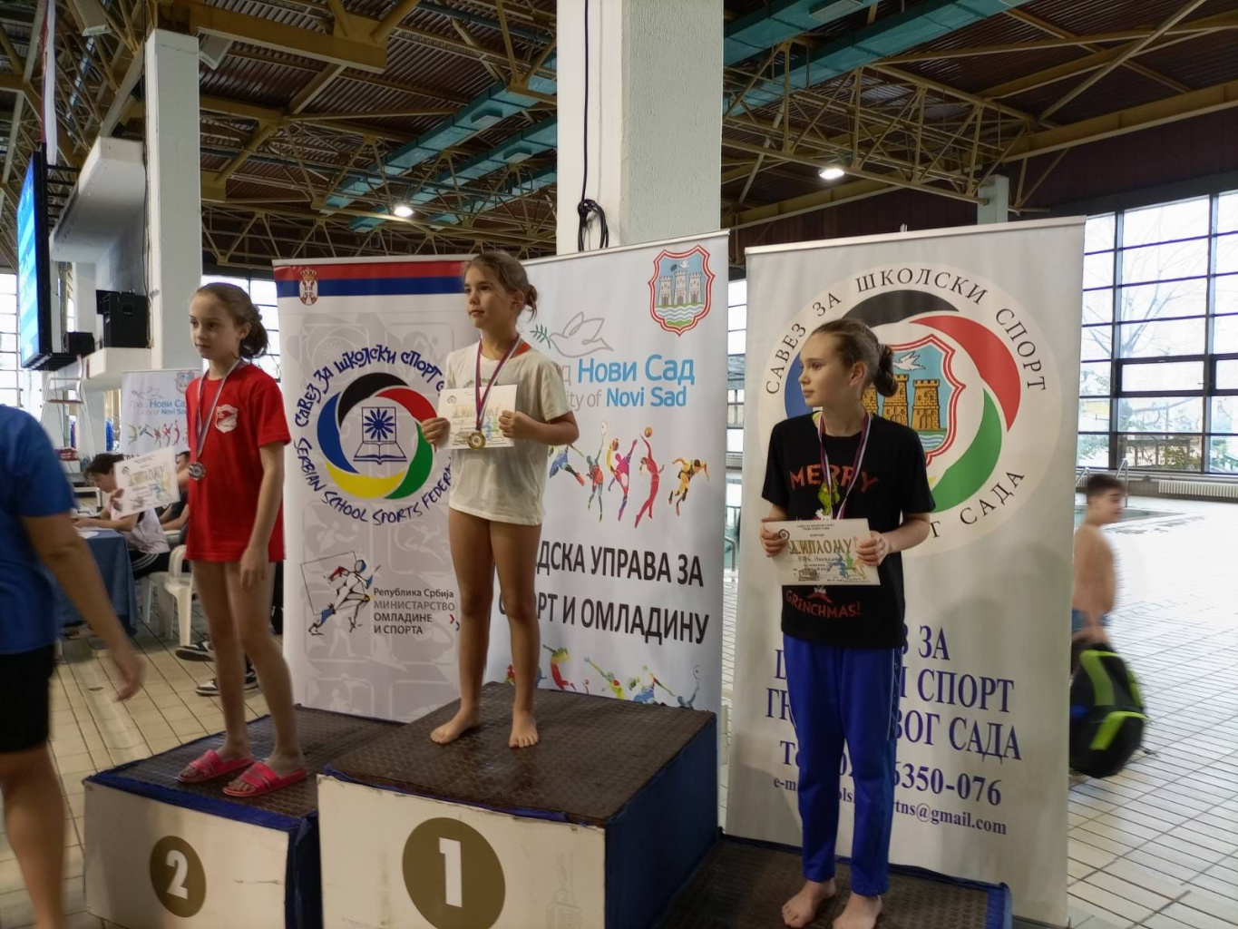 Na okružnom takmičenju iz plivanja, koje je održano 6. decembara 2023. u Novom Sadu, naši učenici su ostvarili izuzetne rezultate: Milica Tarbuk 1.mesto- prsno 50m u kategoriji 3-4. razredi Sara Pavkov 1.mesto- delfin 50m u kategoriji 3-4 razredi Jana Pejić 1.mesto- prsno 50m u kategoriji 7. razredi Dunja Lovčević 1.mesto- leđno 50m u kategoriji 7. razredi Lazar Pavkov 2.mesto- delfin 50m u kategoriji 1-2. razredi Uroš Peslać 2.mesto- kraul 50m u kategoriji 5. razredi Varvara Milićev 2.mesto- kraul 50m u kategoriji 5. razredi Una Zelić 2.mesto- delfin 50m u kategoriji 5. razredi Pavle Dokić 3.mesto- kraul 50m u kategoriji 3-4. razredi Petra Cvijić 3.mesto- kraul 50m u kategoriji 5. razredi Ana Tarbuk 3.mesto- prsno 50m u kategoriji 5.razredi Andrej Tufegdžić 3.mesto- leđno 50m u kategoriji 6. razredi Marina Zelić 3.mesto- delfin 50m u kategoriji 7.razredi Na takmičenju su još učestvovali: Aleksej Orčik, Aleksej Tomašev, Anđela Blagojević, Miladin Jakovljević, Dmitar Mraović.